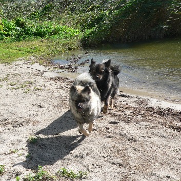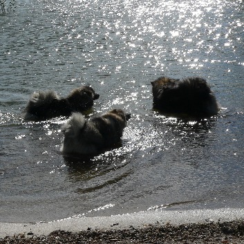 Bei traumhaftem Wetter haben sich die Spitze eine Abkühlung gegönnt. Was das ein Schreck - beim Bootsanleger war Bonita auf einmal verschwunden. Wir haben gerufen und gesucht, da kam sie aus der Ostsee geklettert. Klatschnaß.